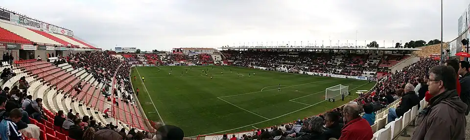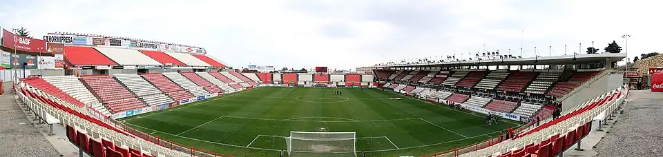 Die Spielstätte wurde am 2. Februar 1972 eingeweiht und fasst gegenwärtig 14.591 Zuschauer. Das Stadion mit der überdachten, doppelstöckigen Haupttribüne liegt am Stadtrand von Tarragona. Die Anlage ist komplett mit Sitzplätzen ausgestattet, die abwechselnd blockweise in rot und weiß gehalten sind.
