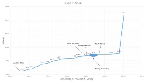 ![]() Einzugsgebiet des Sanaga mit dem Noun und dem Bamendjing-Reservoir (Mitte links) | ||