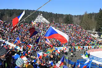 Nordwestlich der Stadt Nové Město na Moravě befindet sich am Harusův kopec und im Ochozawald das bedeutendste Skizentrum auf der Böhmisch-Mährischen Höhe, wo seit 1934 jährlich der Wettkampf um den Pokal Goldener Ski der Böhmisch-Mährischen Höhe ausgetragen wird. Dieser Wettkampf ist seit 1981 Teil des Skilanglauf-Weltcups. 2006 wurde die Vysočina Arena als Trainings- und Wettkampfstätte für Biathlon und Langlauf eröffnet. Seit 2012 wurden hier auch wiederholt Wettkämpfe im Rahmen des Biathlon-Weltcup ausgetragen. Nové Město na Moravě war bisher Gastgeberstadt folgender internationaler Wettkämpfe: