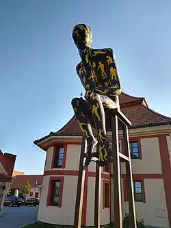 - Kunstwerke „Člověče nezlob se“ (Mensch ärgere dich nicht) und „Myslitel“ (Der Denker), vor der Einfahrt zum Hof