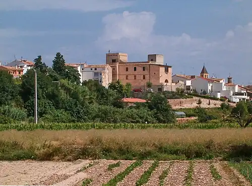 - Eine Burg (castillo) existierte wohl erst seit dem ausgehenden 12. Jahrhundert; danach wechselten Ort und Burg häufig den Grundherrn (señor). Während des „Kriegs der beiden Peter“ wurde die alte Burg wahrscheinlich zerstört. Der heutige Bau stammt aus der Zeit des 15. bis 17. Jahrhunderts; in dem Ende des 20. Jahrhunderts grundlegend modernisierten Bau befindet sich heute das Rathaus (casa consistorial) der Gemeinde.[7][8][9]