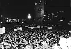 - Berlin/Deutschland: An der ersten genehmigten Demonstration in der Geschichte der DDR, deren Ausrichter weder eine staatliche noch eine den sozialistischen Staat tragende Organisation ist, nehmen auf dem Alexanderplatz im Bezirk Mitte mindestens 200.000 Menschen teil. Zu den Rednern gehören mit dem Rechtsanwalt Gregor Gysi, der Schriftstellerin Christa Wolf und dem Politiker Markus Wolf auch ehemalige und aktuelle Mitglieder der seit 1949 regierenden Partei SED.[9][10][11]