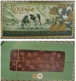 Bekannteste Produkte von Novesia waren Novesia Goldnuss-Pärchen (zwei Haselnüsse mit Schokolade umhüllt und in einem goldenen Körbchen aus beschichtetem Papier mit grünem Henkel arrangiert) sowie Novesia Gold-Nuss (eine 100-Gramm-Schokoladentafel mit ganzen Haselnüssen).[4] Besonderes Kennzeichen der Novesia Gold-Nuss ist das große Sichtfenster aus Cellophan-Papier, durch das der Kunde die ganzen Haselnüsse erkennen kann. Zeitweise wurde das Produkt mit der „Garantie27“ beworben, dass darin mindestens 27 Nüsse enthalten seien. War dies nicht der Fall, erhielt man Ersatz für Schokolade und Porto in Naturalienform.
