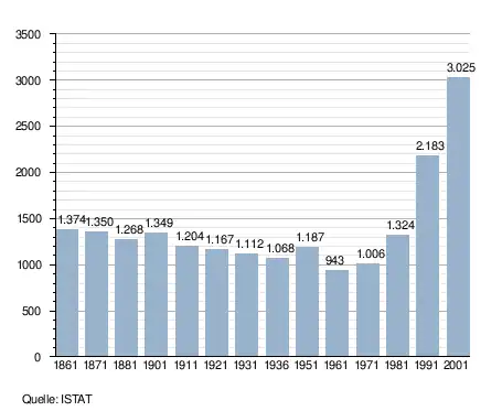 - ↑ Bilancio demografico e popolazione residente per sesso al 31 dicembre 2024. ISTAT. (Bevölkerungsstatistiken des Istituto Nazionale di Statistica, Stand 31. Dezember 2024).