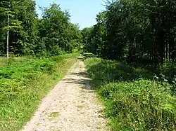 Die Stelle des Amphitheaters, das heute noch als leichte Mulde auf einer Wiese zu erkennen ist.