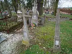 - Neben der Kirche befindet sich ein evangelischer Friedhof mit historischen Grabsteinen, der heute noch belegt wird.