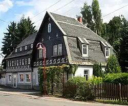 1. Hälfte 19. Jahrhundert | Baugeschichtlich und sozialgeschichtlich von Bedeutung, Fachwerkbau (verschiefert) mit bewegter Dachlandschaft.