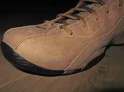 Nubuk bezeichnet eine Zurichtungsart für feinste Leichtleder.[1] Es ist entsprechend auch die Bezeichnung für ein feines Rauleder, das auf der Narbenseite (der dem Fleisch abgewandten Oberseite der Haut) leicht angeschliffen ist und dadurch einen samtartigen Charakter erhält. Die Optik ähnelt dem Elchleder, nur dass Nubuk nicht mit Schäden wie bei Leder von wildlebenden Tieren behaftet ist.[1] Der leichte Anschliff mit kürzestem Schliff ist nicht faserig. Für hochwertiges Nubukleder werden feine Kalbs- oder Rindshäute verwendet.[2] Auch Schaf- und Schweinsleder kann auf Nubuk zugerichtet werden. Einsatz findet es unter anderem bei Polstermöbeln, Handtaschen, Bekleidung, Schuhen, Handschuhen und als Autoleder. Nubuk bleibt nach dem Einwachsen sehr lange wasserfest.