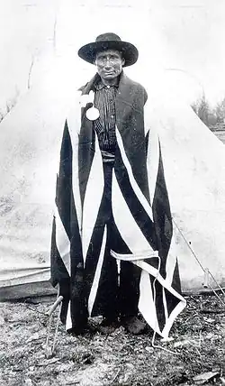 - ↑ Häuptling Gambler war der älteste Sohn von Picheito (Edward Tanner), Häuptling der Red Lake Band der Saulteaux und Enkel Häuptlings John Tanner (ca. *1780 – †1846, Ojibwe-Name Shaw-shaw-wa-ne-ba-se/Zhaashaawanibiisi - "The Falcon", auch bekannt als: The White Indian) und dessen Saulteaux-Frau Mis-kwa-bun-a-kwa ("Red Sky of the Morning")