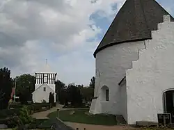 Die Rundkirche ist in romanischer Waldemarszeit zwischen 1150 und 1250 erbaut worden.[1] Wie die anderen Rundkirchen ist sie als Wehrkirche mit einem flachen Plankendach zur Verteidigung errichtet worden. Das Kegeldach, die beiden äußeren Stützmauern und die Vorhalle erhielt sie erst im späten Mittelalter.[2] Detaillierte Darstellungen der Kirche in Form von Grundrissen, Schnitten und Ansichten (von Charles Christensen, 1939) finden sich in[3].
