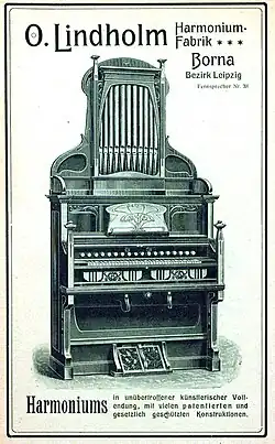 - ↑ a b c d e f g o. V.: Lindholm Harmoniumfabrik auf der Seite borna.de [ohne Datum, 2014?], zuletzt abgerufen am 9. Juli 2018