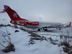 Eine stillgelegte Fokker 100 der OLT Express in Saarbrücken