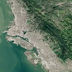 Die Stadt Oakland [] im US-Bundesstaat Kalifornien, am östlichen Ufer der Bucht von San Francisco gelegen, ist Sitz der Bezirksverwaltung des Alameda County. Laut der letzten Volkszählung im Jahr 2020 zählte die Stadt 440.646 Einwohner und war damit nach San José und San Francisco die drittgrößte Stadt der Metropolregion San Francisco Bay Area.[2] Die Stadt wurde im Jahre 1852 gegründet und ist bis heute stark industriell geprägt. Historisch waren der Hafen und die Eisenbahn als Infrastrukturknotenpunkte wichtig. Beide zogen Einwanderer an, so dass die Bevölkerung der Stadt große Anteile von Minderheiten hat.
