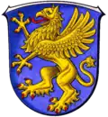 Auf blauem Schild ein goldener, rotbezungter und -bewehrter Greif.
