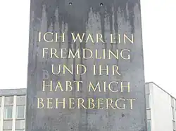Der Obelisk ist ein für die documenta 14 entworfenes Denkmal des nigerianisch-amerikanischen Künstlers Olu Oguibe. Im Juni 2017 wurde es am Kasseler Königsplatz aufgestellt; seit April 2019 steht der Obelisk in der Treppenstraße. Das 16,20 m hohe Monument mit dem Titel Das Fremdlinge und Flüchtlinge Monument[1] trägt in den vier in Kassel am häufigsten gesprochenen Sprachen Arabisch, Deutsch, Englisch und Türkisch die Inschrift: „Ich war ein Fremdling und ihr habt mich beherbergt“, ein Zitat aus dem Matthäus-Evangelium (Mt 25,35c ).