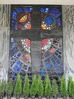 Die bestehende Aufbahrungshalle wurde zwischen 1964 und 1966 nach den Plänen des Architekten Erich Boltenstern umgestaltet, die künstlerische Ausgestaltung führte Hermann Bauch aus. Bei der Halle handelt es sich um einen langgestreckten Bau mit überhöhter offener Mittelhalle. Hermann Bauch entwarf neben den Bleiglasfenstern in den Seitenwänden auch ein Antikglasmosaik, das in der Apsis angebracht wurde. Zudem ist die Halle durch ein dunkles Betonkreuz geschmückt.