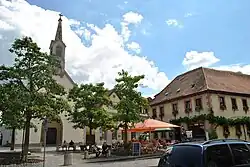 Bald erweiterte man das mittelalterliche Marktareal, sodass es sich vom heutigen Oberen Markt (in der Vorstadt) entlang der Hauptstraße (innerhalb der Befestigung) bis zum heutigen Marktplatz zog. Bis zum Ende des Mittelalters übertraf der Obere Markt den eigentlichen Marktplatz an Bedeutung für den Handel, erst mit dem Bau des Rathauses im 16. Jahrhundert änderte sich dies. Inzwischen lagen in der Oberen Vorstadt die sozialen Einrichtungen der Stadt, ein Seel-, ein Armen- und ein Siechenhaus, seit 1544 der Friedhof und die Totenkapelle extra muros (vor den Mauern).