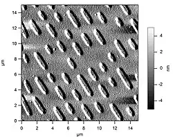 | Rasterkraftmikroskop (AFM) | Topographie an der Oberfläche im Ortsraum | Schwingende Spitze (Cantilever) | Ablenkung eines Laserstrahls (Frequenz-, Phasen- und Amplitudenänderung) | Kraft zwischen AFM-Cantilever und Oberfläche (Pauli-Repulsion, Van-der-Waals-Wechselwirkung) |