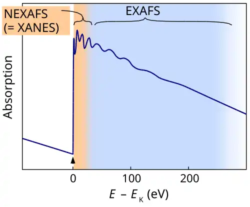 | X-Ray Absorption near edge Structure (XANES=NEXAFS) | Informationen über Nahordnung, Elektronische Struktur, Oxidationszustand | durchstimmbere Röntgen-Photonen (Synchrotronstrahlung) | Röntgen-Photonen | wie EXAFS aber genauere Auflösung der in Absortionskantennähe |