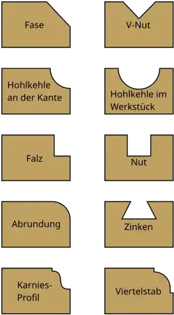 Verschiedene Profile, die mit einer Oberfräse erzeugt werden können