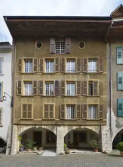 Das «stattliche Altstadthaus» ist ein Putzbau mit vier Obergeschossen über der Laubenarkade. Sein Kern ist möglicherweise spätmittelalterlich. Über den Umfang der Baumassnahmen nach dem Brand kann nur eine Bauuntersuchung Aufschluss geben. Die «sehr schöne» spätbarocke Fassade zeigt vier Fensterachsen, ein feines Geschossgesims über der Arkade. Die Fenster sich hoch und wirken «repräsentativ». Die flachen Bänder zwischen den profilierten Fensterbänken gliedern die Fassade. Im Dachgeschoss wurde die ehemalige Aufzugtür durch ein Fenster ersetzt, es zeigt zwei Okuli neben dem Fenster. Alle Fenster sind geteilt und haben Läden. Die Haustür gilt als «hervorragend».[1]