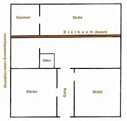 Ende des 17. Jahrhunderts wurden statt Balkenkamine angebautgestufte Kamine an der Trauf- oder Rückseite des Hauses erstellt.
