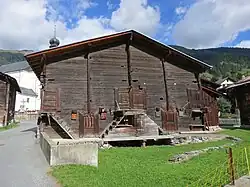 Der zweigeschossige Heustall (auch Stallscheune genannt) ist der häufigste Nutzbau im Goms. Er besteht aus dem niederen Stallgeschoss für die Tiere und der aufgesetzten Scheune für das Heu. Der Stall ist meistens aus Lärchenholz gebaut, weil er durch die Tiere mehr beansprucht wird als die Scheune. Der Stall ist in Abteile (Unnerschlachten) unterteilt, in denen je zwei Kühe Platz haben. Der Stalleingang besteht aus zwei mächtigen Studpfosten, in die die Seitenwände vernutet sind. Beidseits der Stalltüre führt je eine Holztreppe zu dem kleinen Podest vor den beiden Scheuneneingängen (Ezporten), über die das Viehfutter geholt wird. Das Einlegen des Heus erfolgt über ein bis zwei Holzeinwürfe (Lischportä) auf der Rückseite des Heustalles.