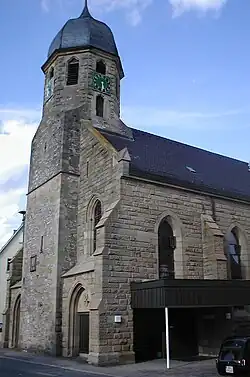 - Die Katholische Herz-Jesu-Kirche wurde von 1899 bis 1902 im Stil der Neogotik nach Plänen von Ulrich Pohlhammer erbaut. Der Unterbau des Turmes rührt noch von einer älteren Dreifaltigkeitskirche um 1600 her. Der Turm wurde beim Neubau durch Pohlhammer um ein achteckiges Obergeschoss und eine Turmhaube erhöht. Das schlichte Innere der ursprünglich schmuckvolleren Kirche ist einer Renovierung der 1960er Jahre geschuldet.