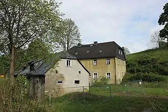 ![]() Der Gebäudekomplex des Hammergutes Oberhammer vor dem 2019 erfolgten Abbruch