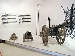 Das Inventar von circa 400 Objekten aus der Gründungszeit des ersten städtischen Museums im 19. Jahrhundert bildet den Grundstock der Museumseinrichtung.[10] Zu nennen sind hier insbesondere Geschütz- und Handfeuerwaffen, eine gusseiserne Kanone (Mörser) um 1400, Blank- und Stangenwaffen und die bedeutenden „Passauer Wolfsklingen“. Weitere zentrale Objekte sind eine Urkundentruhe aus Leder von 1299, Eichmaße des 15. und 18. Jahrhunderts des Passauer Rats, eine Truhe aus dem Salzstadel von 1540, die Ausstattung der letzten Passauer Nagelschmiede sowie Verkaufstisch und Wandschrank eines Tuchladens aus der Mitte des 19. Jahrhunderts.