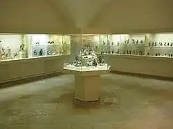 Die Porzellansammlung umfasst etwa 1.000 Objekte aus dem 19. und frühen 20. Jahrhundert. Die Stücke sind in der Passauer Porzellanfabrik gefertigt worden, die mit kurzen Unterbrechungen von 1776 bis 1952 existierte.[12] Die Sammlung reicht von Burgfräuleins und Rittern, Kostümfiguren, napoleonischen Soldaten bis hin zu zahlreichen Tierfiguren und modernen Menschenbildern.