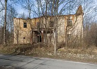 Der zweigeschossige Bau trug ein Mansarddach. Die Giebel hatten eine markanten Säulengliederung. Im Inneren hatte der Bau Kreuzgratgewölbe und barocke Stuckdecken im Erdgeschoss. Im Hauptsaal befand sich ein stuckverziertes Spiegelgewölbe. Das Hauptgebäude ist heute verfallen, ebenso die den Hof rahmenden Wirtschaftsbauten.