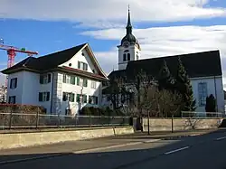 Die Geschichte der katholischen Pfarrkirche St. Leodegar reicht mindestens bis 1185 zurück, dem Jahr ihrer ersten urkundlichen Erwähnung. 1515 wurde die Kirche neu gebaut, nach etwas mehr als eineinhalb Jahrhunderten aber wieder abgerissen, wobei der aus dem Mittelalter stammende Kirchturm erhalten blieb. Das heute bestehende barocke Gebäude entstand 1684/85. Wegen Platzmangels gab die Kirchgemeinde 1777 eine Verlängerung des Kirchenschiffs in Auftrag.[13]