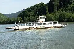 Eine Autofähre verbindet Obernzell mit dem gegenüberliegenden (österreichischen) Donauufer, wo die B 130 Nibelungen Straße über Engelhartszell (9 km) und Eferding (40 km) nach Linz (65 km) führt. Die Fähre ist der einzige autotaugliche Donauübergang zwischen Passau und der Donaubrücke Niederranna, sonst gibt es nur noch die Fußgängerfähre Engelhartszell–Jochenstein. Die Fähre quert regelmäßig das ganze Jahr, aber nur tagsüber.[19]