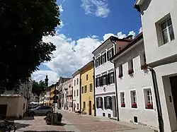 Dieses Haus zeigt sich in seinem nördlichen Bauteil und im ersten Stock in um 1900 erneuerter Form. An der Fassade befindet sich über dem Rundbogentor ein Balkon mit Eisengitter. Im südlichen Teil des Erdgeschosses sind Kreuzgratgewölbe erhalten.