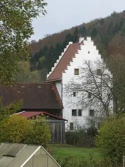 - Spätgotisches dreigeschossiges Weiherhaus mit Satteldach und Treppengiebeln, Schloss der Rornstätter, um 1495 erbaut und um 1719 umgebaut. 1955 wurde das Schloss verputzt und 1990 renoviert.[9]