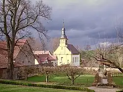 - Wenige Jahre vor dem Bau des Schlosses wurde die barocke katholische Pfarrkirche St. Barbara ebenfalls nach Plänen von Joseph Greissing errichtet. Diese geht auf eine Anlage des späten 16. Jahrhunderts zurück; das heutige Langhaus mit Giebelreiter wurde 1721 fertiggestellt. Die Finanzierung sicherte hauptsächlich das Kloster Ebrach unter dem baufreudigen Abt Wilhelm I. Sölner.