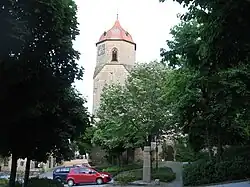 - Kilianskirche im Teilort Oberfischach mit romanischen Bauteilen im Kirchturm
