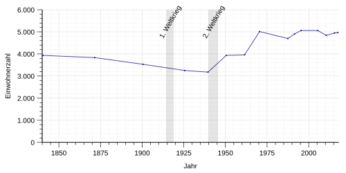 Zwischen 1988 und 2018 wuchs die Stadt von 4732 auf 5030 um 298 Einwohner bzw. um 6,3 %. Einwohnerentwicklung in der Gemeinde Oberviechtach unter Berücksichtigung der Eingemeindungen[8]: