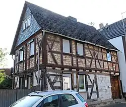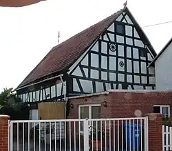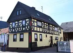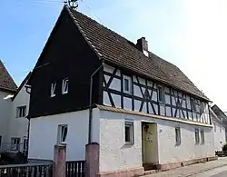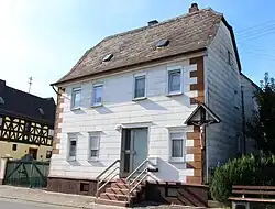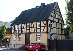 Das reiche Fachwerk dieses Hauses vom Anfang des 19. Jahrhunderts ist ebenfalls durch Umbauarbeiten stark zerstört und heute insgesamt verdeckt. Durch das besonders hohe Krüppelwalmdach, die Position an der einstmals zentralen Straßenkurve des Orts und ein großes Kruzifix aus Lindenholz an der Hausecke bleibt es weiterhin markant.