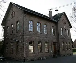 Das Backsteingebäude entstand 1876 als Volksschule. Segmentbögen über den Fenstern und Staffelfenster im Dachgeschoss schmücken den Bau. Der Natursteinsockel ist heute größtenteils vom nachträglich erhöhten Bodenniveau des Hofs verdeckt. Adresse: Siegener Straße 5