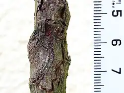 Baumkrebs am Zweig eines Apfelbaumes | ||||||||||||