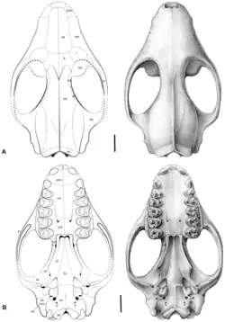 An den beiden bisher bekannten Schädel lassen sich Unterschiede in der Robustheit erkennen. So weist der eine Schädel einen allgemein deutlich kräftigeren Bau auf mit vergrößertem Eckzahn und stärkerem sowie höherem Sagittalkamm, während der andere graziler gestaltet ist. Dies wird mit einem Sexualdimorphismus in Verbindung gebracht, demnach männliche Tiere kräftiger gebaut waren als weibliche. Bemerkenswert an beiden Schädeln sind die pneumatisierten Knochen am Schädel, die eine Parallelentwicklung zu den Rüsseltieren darstellen. Ihre Funktion ist unbekannt, doch möglicherweise stellen sie eine spezialisierte Struktur dar, die zur Übertragung von Lauten beitrug.[1]