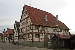 Das Rathaus ist ein giebelständiger Fachwerkbau mit Dachreiter aus dem Jahr 1727. Es wurde als Schulhaus erbaut und ist seit 1793 Rathaus.[12]