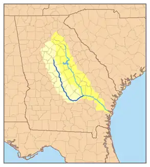 ![]() Übersichtskarte des Ocmulgee Flusssystems (hervorgehoben) | ||