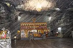 - Das ehemalige Salzbergwerk wurde 2009 zum Teil dem Tourismus überlassen. Nach etwa 1,3 Kilometer in einer Tiefe vom Eingang von ca. 29 Meter, befinden sich die etwa 8 Meter hohen Räume auf einer Fläche von ca. 2 Hektar. In den Räumen befinden sich ein Saal für festliche Veranstaltungen, eine Kirche, ein Tennisplatz, Entspannungsbereiche, Ausstellungen, ein Kinderspielplatz, ein Restaurant, eine Minikartanlage und sonstige.[9]