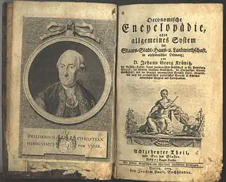 - ↑ Johann Georg Krünitz: Oekonomische Encyclopädie, oder allgemeines System der Staats-, Stadt-, Haus- und Landwirthschaft, in alphabethischer Ordnung. Universitätsbibliothek Trier. Auf Uni-Trier.de, abgerufen am 16. Januar 2024.