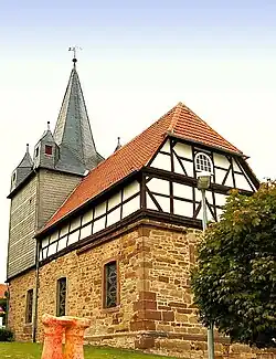 Die Oelshäuser Kirche, ein Steinbau mit Fachwerkoberbau, ist eine Saalkirche in der Ortsmitte. Aus dem 11. Jahrhundert stammen eine vermauerte Rechtecktür und ein romanisches Tympanon. Die Tür befindet sich an der Nordwand unter der Turmmitte.