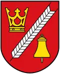 Blasonierung: „In Rot eine linksschräge silberne (weiße) Ähre; darüber eine goldene (gelbe) Krone und darunter eine goldene (gelbe) Glocke; alle schwebend.“