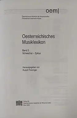 Das Oesterreichische Musiklexikon (OeML)[A 1] wurde von der Österreichischen Akademie der Wissenschaften (ÖAW) veröffentlicht.